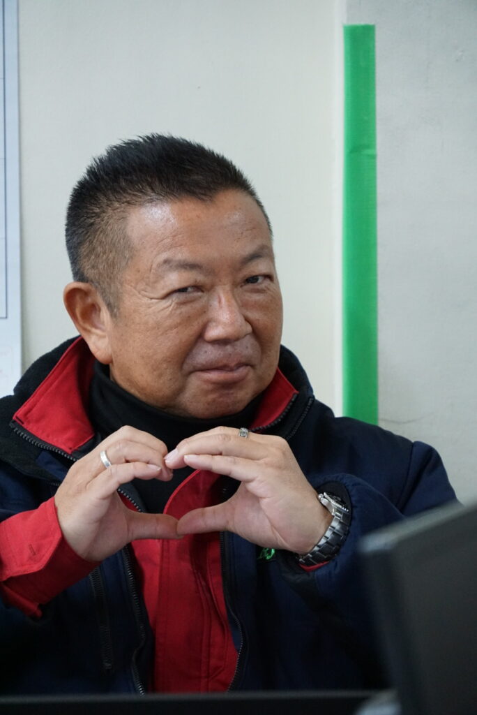 カメラを向けるたびに次々と「多彩な顔」を見せてくれるサービス精神旺盛な課長のおかげで、撮影現場は笑いに包まれ、一気に和やかな雰囲気になりました。